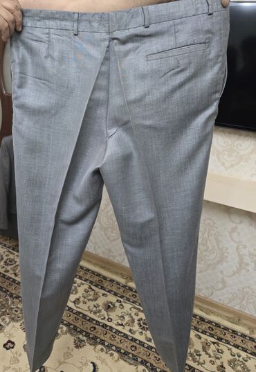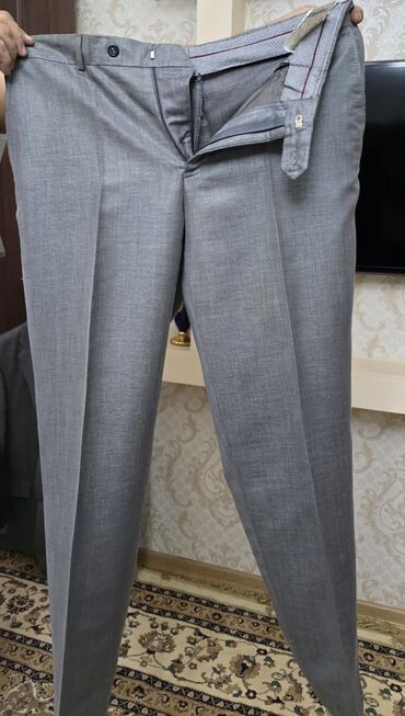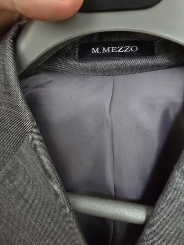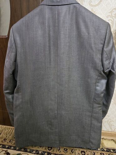 Kişi kostyumu – iki parçalı - Rəng: tünd boz, incə xətli (micro-check/çizgili) naxış - Model: 2 düyməli klassik pencək, dar krujevalı (notch) yaxa - Pencəkdə: sinə cibinin üstü (bilet cibi görünüş...