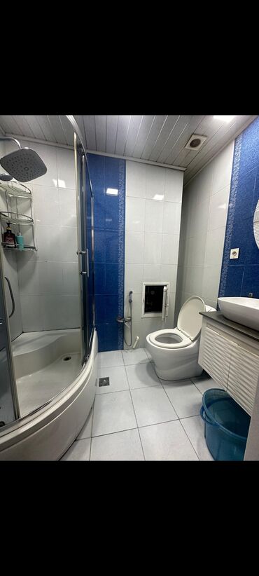 - Hamam/tualet: şüşə qapılı duş kabinəsi (üst yağış duş başlığı), asma çanaq, əl duşu, döşəmə süzgəci, paltaryuyan üçün kommunikasiya, keramika plitələr və ventilyasiya.