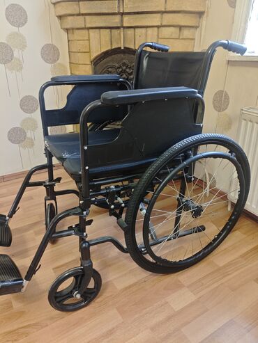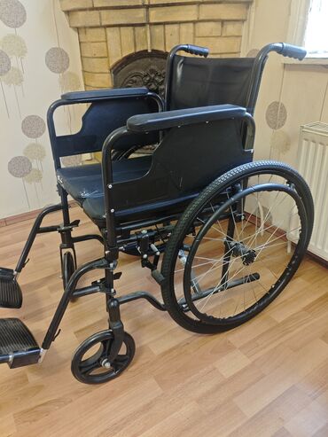 Satişi və icaresi Mexanik əlil arabası - Konstruksiya: möhkəm metal çərçivə, qara parça oturacaq və arxa hissə - Təkərlər: iri arxa təkərlər (əl ilə hərəkət etdirmə üçün tutacaqlarla), ön hissədə f...