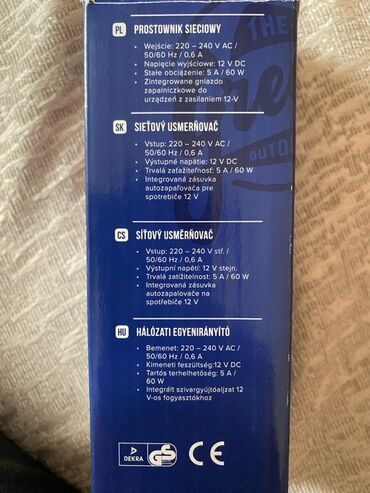 - Şəbəkə adapteri/eyniyyətləndirici: 220–240 V AC (50/60 Hz, 0.6 A) girişi 12 V DC çıxışa çevirir.