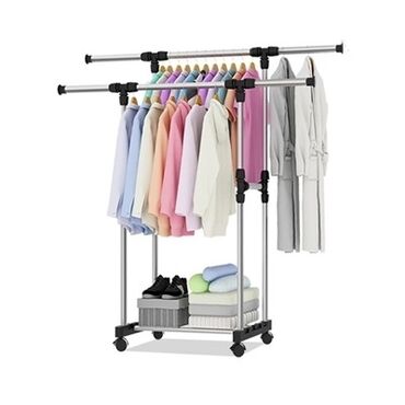 Paltar asma rəfində asılqanlar üçün iki səviyyə var