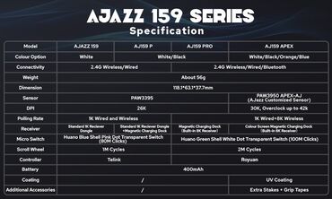 Model: AJ159 APEX Rəng: Qara Üç -Rejim: 2.4g Simsiz + Simli +
