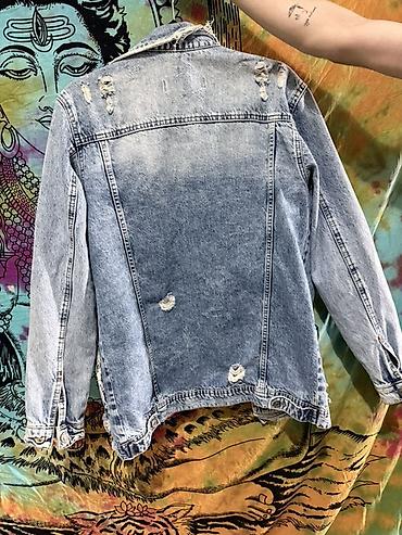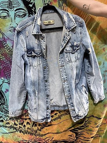 Cins gödəkcə – “Wild wash finishing” - Material: 100% denim (pambıq) - Rəng: mavi, yuyulma effekti ilə (wild wash) - Ölçü: 36 (etiketdə göstərilib) - Dizayn: klassik cins gödəkcə kəsimi, çevrilə b...
