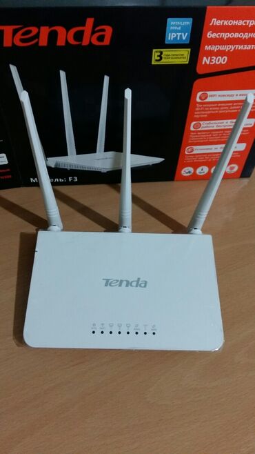Tenda F3 N300 simsiz marşrutlaşdırıcı(2 ci əl işlək vəziyyətdədir) - Model: Tenda F3 (N300 seriyası) - Sürət: 2.4 GHz diapazonunda 300 Mbps-ə qədər - 3 ədəd xarici gücləndirici antena – ev və ofis...