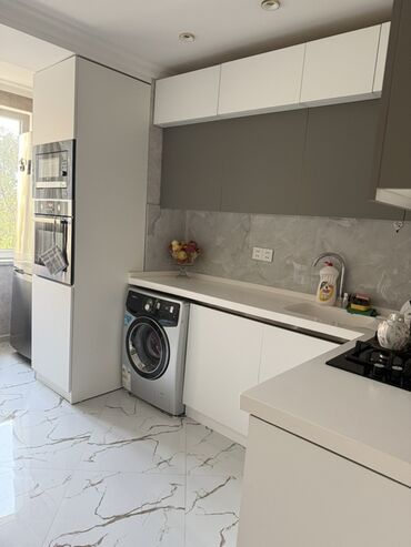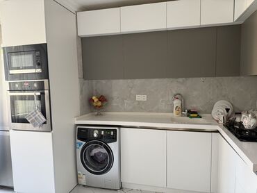 - Alt modullar: ağ fasadlı çekmecələr və dolablar, inteqrasiya üçün nişlər (paltaryuyan maşın üçün yer hazırdır).