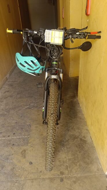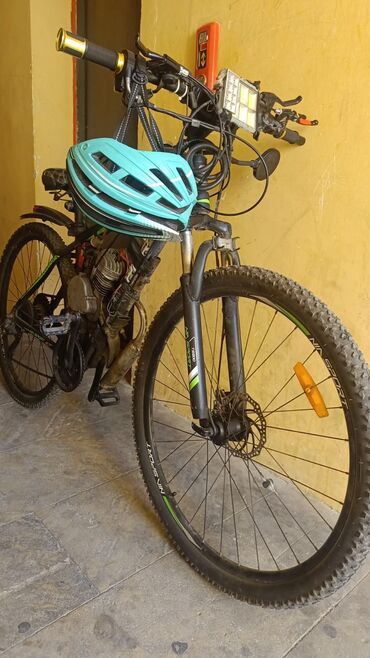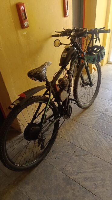 Matorlu velosiped – tam qara - Çərçivə: ön amortizator və arxa yaylı amortizatorla təchiz edilmiş dağ velosipedi şassisi - Təkərlər: iri dişli off-road şinlər; ön və arxa disk əyləcləri - Güc blok...