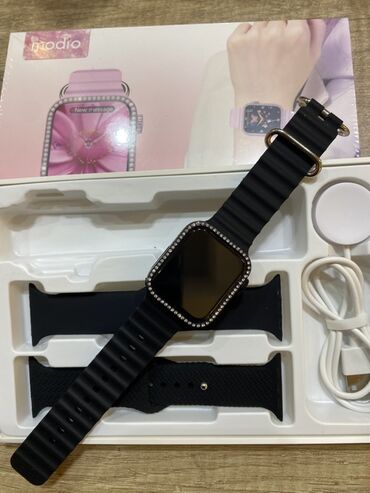 Modio ağıllı saat dəsti - Zərif dizayn: kvadrat korpusun ətrafı daşlarla bəzədilib, şık görünüş verir. - Ekran: toxunmaya həssas tam ekran (kənarsız şüşə görünüşlü). - Kəmərlər: qutuda 3 ədəd sili...