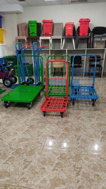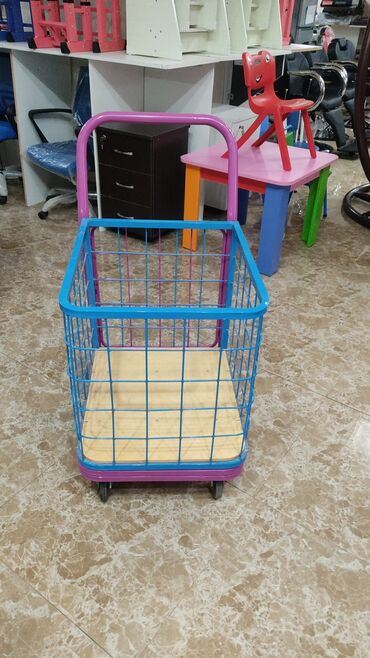 Supermarket alış-veriş arabaları (dəst) - Material: sinklənmiş/metal tor səbət, möhkəm boru karkas - Rəng: metal gövdə, qırmızı plastik tutacaq və uşaq oturacağı hissəsi - Tərtibat: standart iri h...