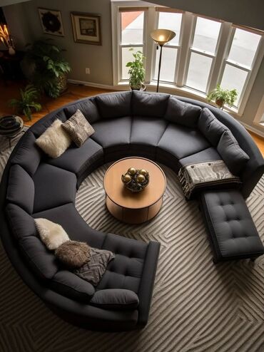 Modern interyerlərdə sosial mərkəz yaradan, çevik yığılma imkanlı premium rahatlıqlı dairəvi divan sistemi.