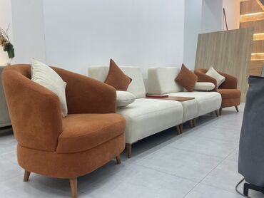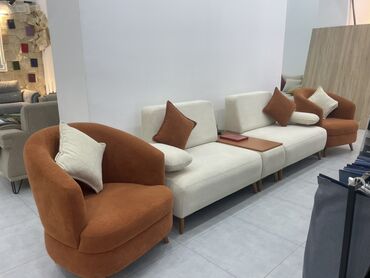 - Komplekt: 2 ədəd yumru formalı kreslo + 3 moduldan ibarət düz xəttli divan