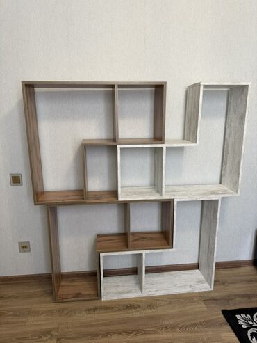 Məhsul: Modul tipli divar rəfi Təsvir: - Müasir “S” formasında dizayn edilmiş modul rəf sistemi - Açıq ağac teksturalı laminat/LDSP material (boz-bej tonlarında), kənarları PVC kantla tamamlanıb -...