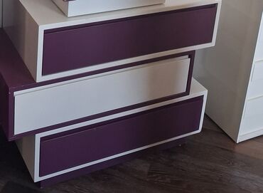 • Bənövşəyi-ağ kombinasiyalı iri qutuvari bloklar (çekmece formalı ön panellərlə)