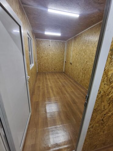- Metal karkaslı, rəngli fasadlı uzun konteyner konstruksiya