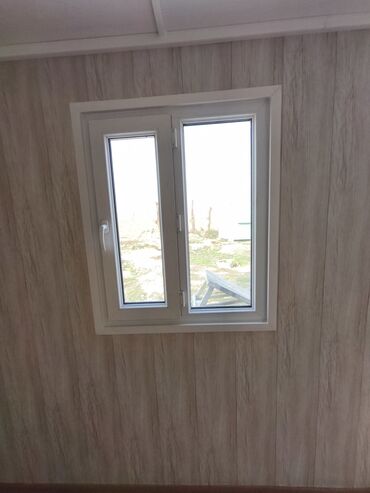 - Pəncərələr: plastik (PVC) profilli, ikitərəfli açılan, şüşə paketli