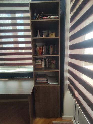 - Yan kitab şkafı: yuxarıda açıq 5 rəf, aşağıda qapalı bölmə. Masanın sağ tərəfində bitişik yerləşir.