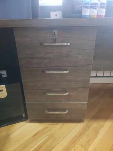 - Masaya inteqrə olunmuş çekmecə bloku: 4 çekmece, üst çekmece kilidlidir (açarı var). Metal tutacaqlar.