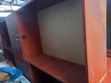 Taxta kitab rəfi və şkaf kombinasiyası - Material: laminat/taxta kompozit, qırmızı-qəhvəyi rəng - Üst hissə: 2 açıq rəf – kitab, dekor, aksesuar və gündəlik əşyalar üçün - Orta hissə: geniş açıq s...