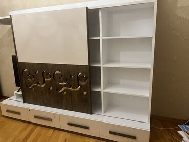 - Mərkəzdə TV üçün bölmə (altında açıq rəf və kabel keçidi üçün boşluq).