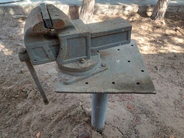 Möhkəm dəmir məngənə. SSSR malı. Yaxşı vəziyyətdə, işləyir. Dəmir altlığı (stoyka) ilə birlikdə satılır.