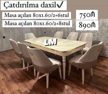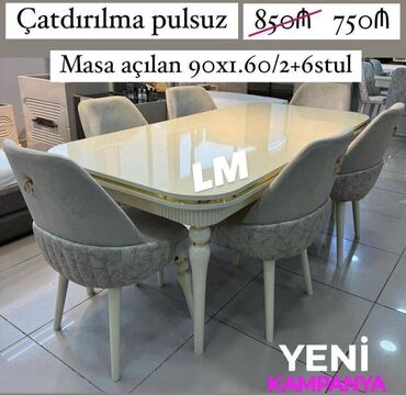 Möhtəşəm masa dəsti👑 Yüksək keyfiyyətlə Qiymət : Masa 90x1.70+6 stul ✨️ 499₼ Masa açılan 90x1.60/2+6stul: 550₼ material: masa laminat . Qubka qalın 7'lik Rəng seçimi sərbəst. ✔️ Çatdır...