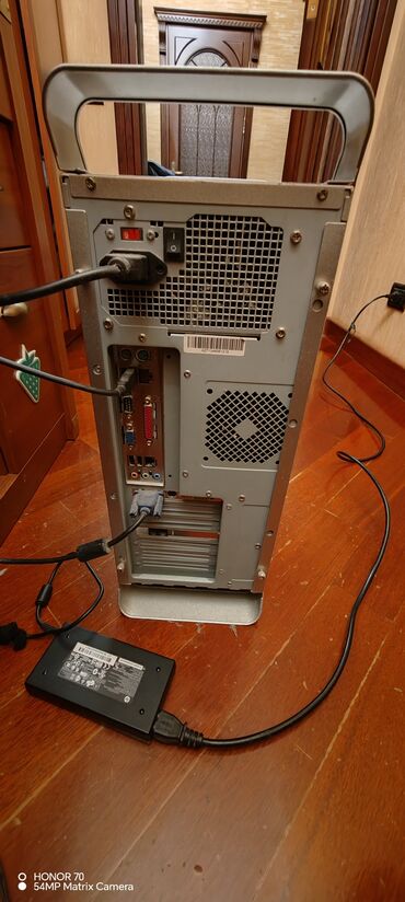 - Ana plata arxa çıxışları: PS/2 klaviatura/siçan portları, serial (COM), paralel (LPT), VGA, 2x RJ‑45 LAN, 3x 3.5 mm audio (line-in/out, mic), USB portlar.