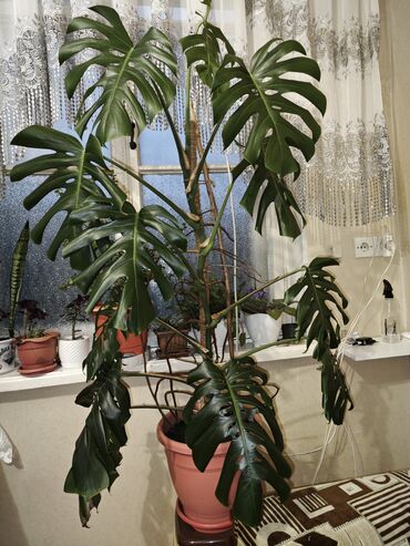 Monstera deliciosa (filodendron növü) – iri, parlaq, dərin kəsikli yarpaqları ilə dekorativ otaq bitkisi.