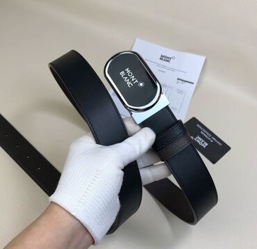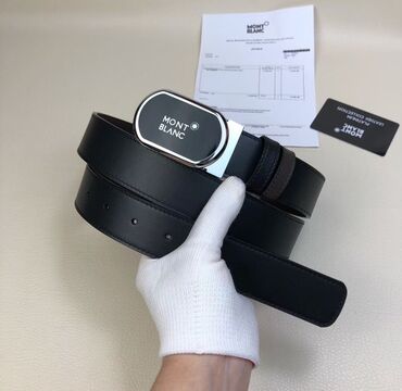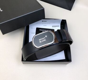 Montblanc kişi kəməri - Material: qara rəngdə hamar dəridən klassik kəmər qayışı - Tokası: oval formalı, parlaq xrom çərçivəli, ön hissədə Montblanc loqosu və ulduz nişanı - En: təxminən 3–3.5 sm ...