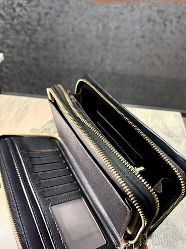 Məhsul: Kişi pulqabıları (bir neçə model) Təsvir: - Material: Qara və tünd-qəhvəyi tonlarda dəri. - Modellər: 1) Uzun pulqabı (sol aşağı küncdə BMW loqosu). Daxildə: - 8-10 ədəd kart üçün ş...