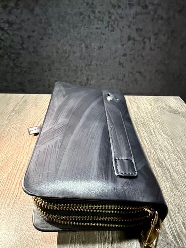 Qara rəngli, toxumalı səthə malik kişi əl çantası/klif. Kompakt ölçülü, biləyə taxılan kəmərli. Xüsusiyyətlər: - Material: toxumalı süni/deri görünüşlü material - Rəng: qara - Ön tərəfdə loqo rely...Giriş•Qeydiyyat
