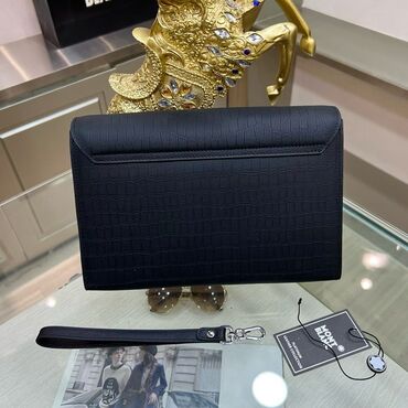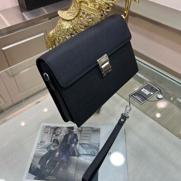 Qara rəngli kişi dəri əl çantası – zəncirbəndli - Material: teksturalı təbii dəri - Rəng: mat qara - Ölçü: kompakt, əlin içində rahat tutulur (bileklik qayışı ilə) - Dizayn: minimalistik korpus, ö...