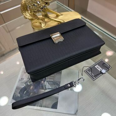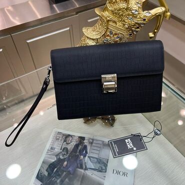 Dior kişi üçün iş çantası – klassik qara rəngdə, minimal dizayn. Xüsusiyyətlər: - Material: teksturalı (dərimsi) xarici səth, metal furnitura - Ölçü: laptop və A4 sənədlər üçün uyğun, nazik profil...