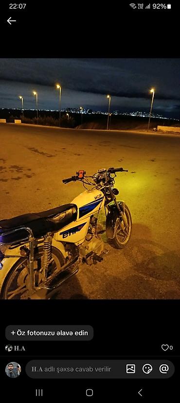 - 4-taktlı benzin mühərriki, ayaqla işə salma (kick-starter). Sürətlər mexaniki.