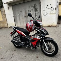 Skuter/moped – şəhər içi rahat sürüş üçün. - Rəng: qara-qırmızı - Arxa oturacaq tutaçı (alyumin rəngli rels) və sərnişin üçün ayaq dayaqları - Arxa ikiqat stop işığı və dönmə siqnalları - Səsboğu...