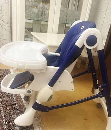 Uşaq yemək stolu 110 manata alınıb uşağın 2 yaşına kimi istifade olunub ünvandan götürülmə - Rəng: tünd mavi–ağ - Yumşaq süni dəri oturacaq və arxalıq, asan silinən material - Çıxarılan yemək masa...