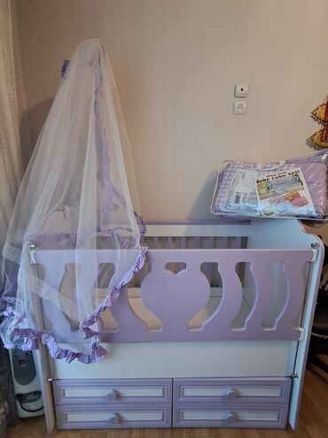 Uşaq beşiyi və aksesuarlar.matras ve qoruyucu yastiqlarla birge satilir.az iwlenib cox seliqelidi