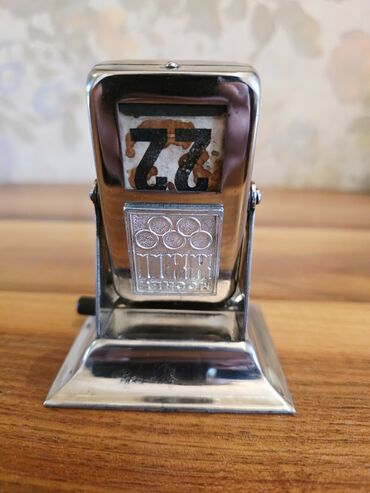 Məhsul: Mekanik masa təqvimi (SSRİ dövrü, yubiley dizaynı) Təsvir: - Metal korpuslu, stolüstü mexaniki təqvim. - Ön paneldə 1917–1977 yubiley emblemi relyefli nişanla. - Günlər üçün dəyişən kartla...