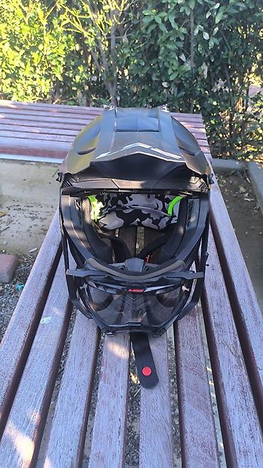 Motosiklet üçün kask Tam İdeal kaskadır, bahalı kaskadır sadəcə ehtiyac olmadığı üçün satılır, razmer xl dir , problemi sadəcə şüşəsi yuxarı qalxmır taxılan yerində problem olduğu üçün ... Oda 5 6...