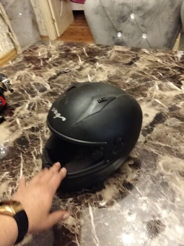 SHARK PHAZ tam üzlük motosiklet dəbilqəsi - Brend/model: SHARK PHAZ - Ölçü: S (etiketdə göstərilib) - Rəng/qrafika: qara-ağ-boz üzərində sarı detallı, parlaq örtük - Korpus: aerodinamik tam üzlüq ...