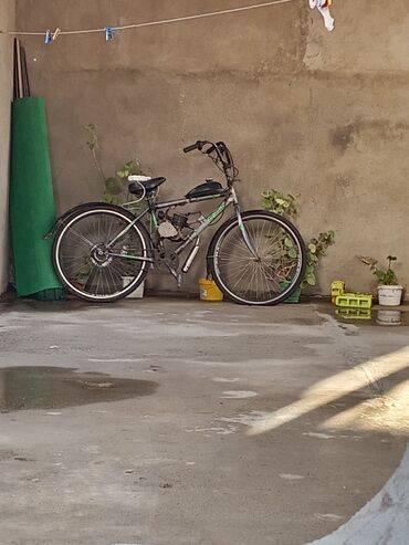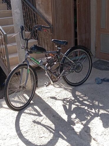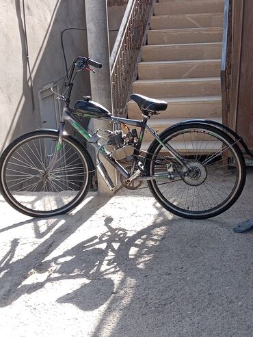 Başqa rəngBenzin mühərrikli bu velosiped gündəlik gediş-gəliş və ya uzun məsafəli səyahətlər üçün nəzərdə tutulub. Rahat oturacaq və möhkəm çərçivəsi var. Ön və arxa təkərlər yol şəraitinə uyğun gəlir. Mühərrik velosipedə əlavə sürət və güc verir, bu da onu yoxuşlarda və ya ağır yüklə hərəkət edərkən praktik edir.