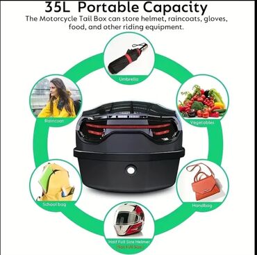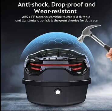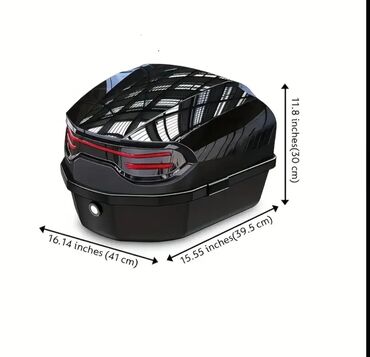Moped/Motosiklet üçün arxa baqaj çantası (top case) - Rəng: qara (üst hissədə qırmızı reflektor pəncərəsi) - Açılıb-bağlanan qapaq, daşıma üçün üst tutacağı var - İç hissə: geniş bir bölmə, gündəl...