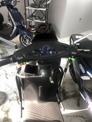 Qara rəngli, modern dizaynlı elektrik skuter çevik, az enerji sərfiyyatı və rahat idarəetməni birləşdirir. Rəqəmsal göstəricilər və LED işıqlandırma gecə-gündüz aydın görünürlük təmin edir.