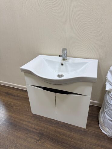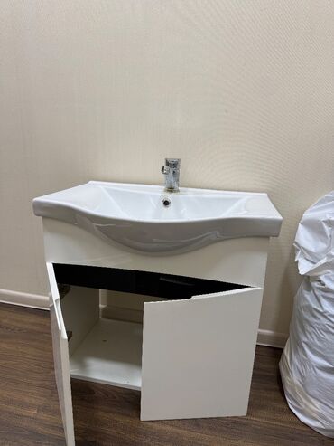 Ağ rəngdə, iki siyirtməli və bir qapılı hamam dolabı dəsti. Dəstə
