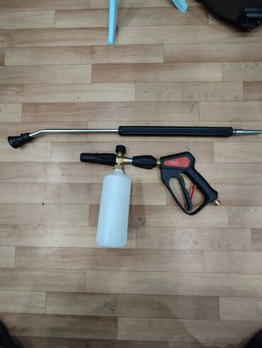 Avtoyuma avadanlıqları seti - Peşəkar avtoyuma üçün komplekt: yüksək təzyiqli “CAR WASH” buxar/yuyucu aparatları (sarı korpuslu, CE işarəli), köpük generatoru/kimyəvi çən (COMAX markalı, üst hissə...
