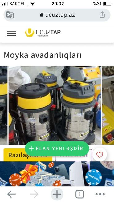 Avtoyuma avadanlıqları seti - Peşəkar avtoyuma üçün komplekt: yüksək təzyiqli “CAR WASH” buxar/yuyucu aparatları (sarı korpuslu, CE işarəli), köpük generatoru/kimyəvi çən (COMAX markalı, üst hissə...