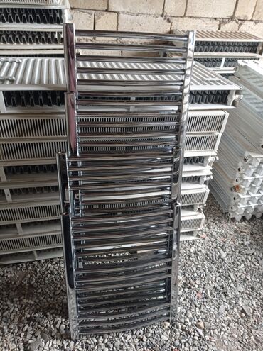 - Xrom örtüklü dəsmal radiatorları (hamam üçün): şaquli karkas və eninə boru layları, su və ya mərkəzi sistemə qoşulma üçün aşağı giriş-çıxış.