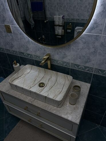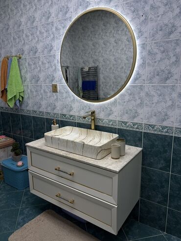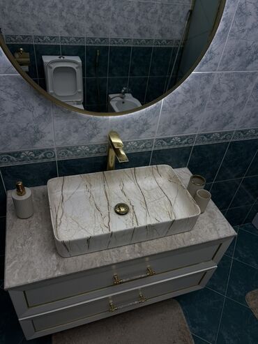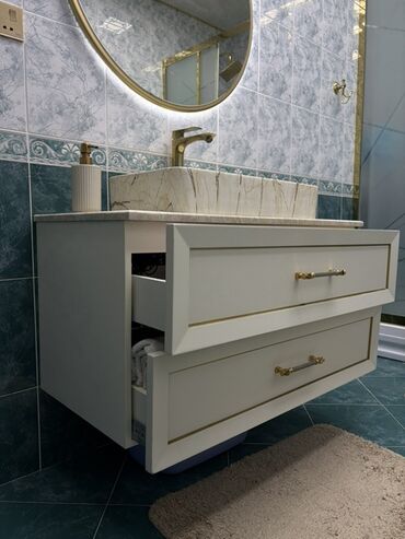 Ağ rəngli keramika Çanaq və iki geniş siyirməli ağ qapalı şkafı olan