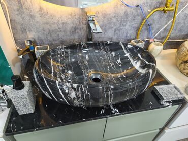 Mərmər görünümlü üstdən quraşdırılan əl yüzüyü (lavabo) dəsti