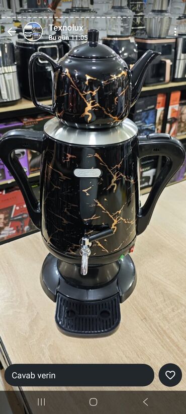- Çaydan + su qızdırıcısı kombinasiyası: üst hissədə keramika/porcelan dəmlik, alt hissədə elektrikli samovar korpusu