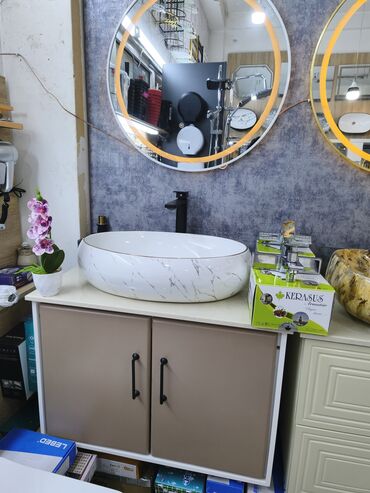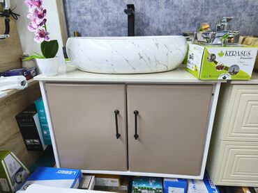 Mərmər naxışlı masaüstü hamam lavabosu + dolab
