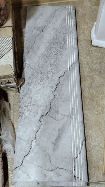 Boz mərmər naxışlı pillə döşəməsi üçün kermoqranit pillə. 3 ədəd qalıb, Sinəliyi ilə birlikdə 1 ədədi 15 manat.
